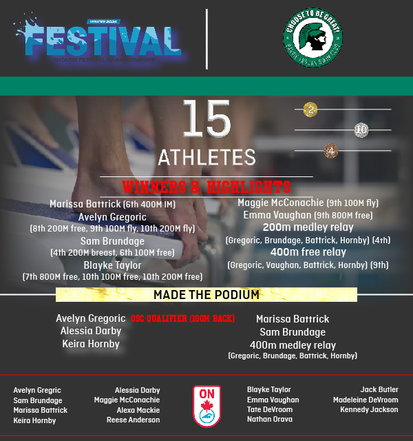 Congratulations to all of the BTSC swimmers who qualified and competed at the Ontario Festivals Championships on Feb. 17 - 18.