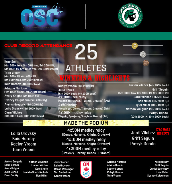 Congratulations to all of the BTSC swimmers and coaches on your achievements at the 2024 Ontario Swimming Championships! Check out the highlights below.