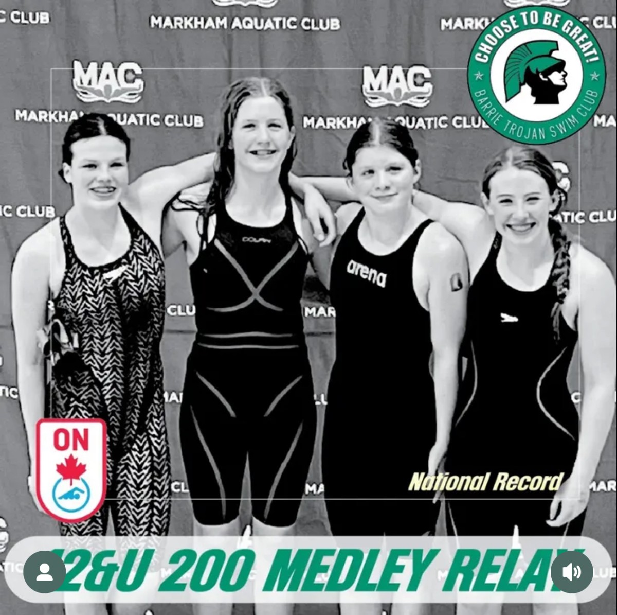 Blayke Taylor, Sam Brundage, Raevyn Maule and Avah-Skye Miller claimed the gold medal and set a new Canadian record (and Ontario and Club record) time of 2:07.70 in the 4x50M medley relay.