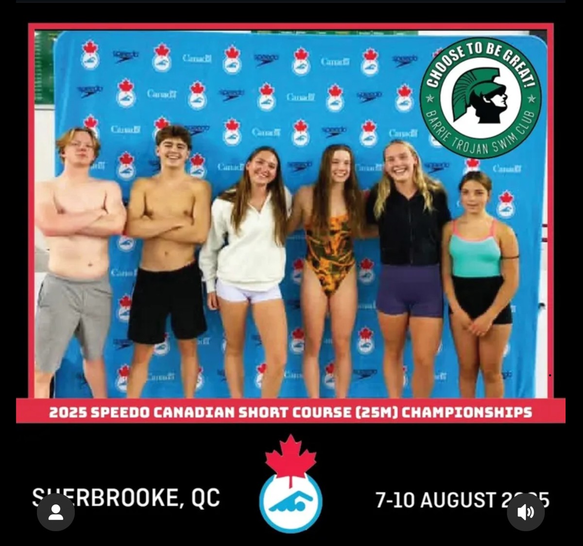The Barrie Trojan Swim Club had six athletes competing at the Speedo Canadian Short Course Championships held in Sherbrooke, QC from August 7th to 10th. There were 104 clubs represented at these inaugural championships.