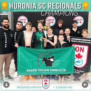 The Barrie Trojan Swim Club are the Huronia Region champions determined by an exciting weekend of racing at the 2025 Huronia Short Course Regional Championships! Both the girls and boys teams topped the points standings. Bracebridge was the home of the 2025 Huronia Regional Short Course Championships from Feb. 7 to Feb. 9. BTSC had a large team of almost 120 swimmers competing against other teams within the Huronia region. All of these swimmers achieved the qualifying times required to gain entry into the meet. There were many highlights over...